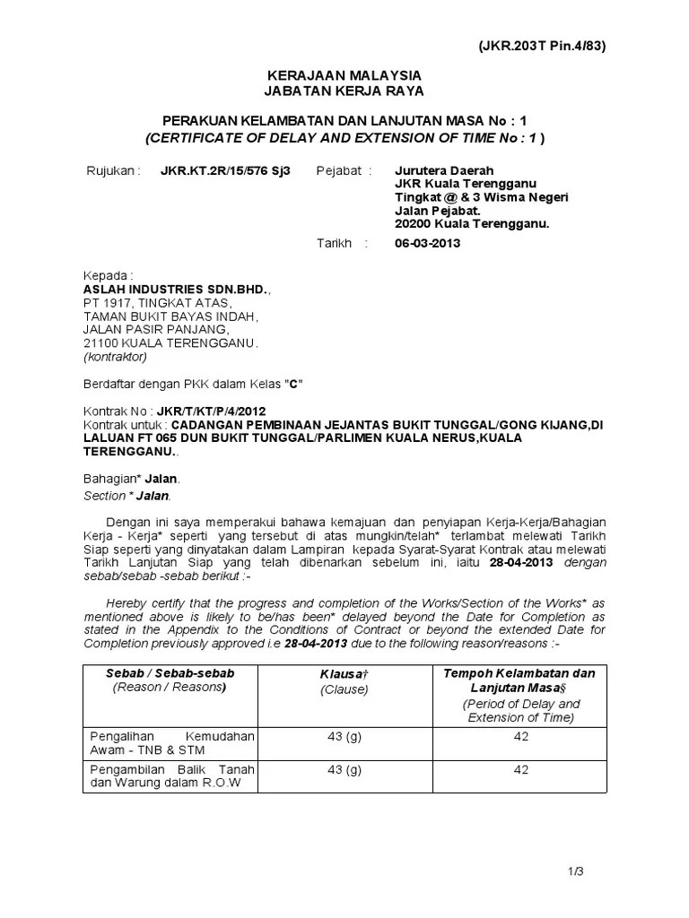 Maka perakuan kelambatan dan lanjutan masa atau extension of time eot boleh dikeluarkan kepada pihak kontraktor sekiranya ia didapati layak . Contoh surat rasmi format 2019 rasmi h. Download contoh surat permohonan eot surat 26 .